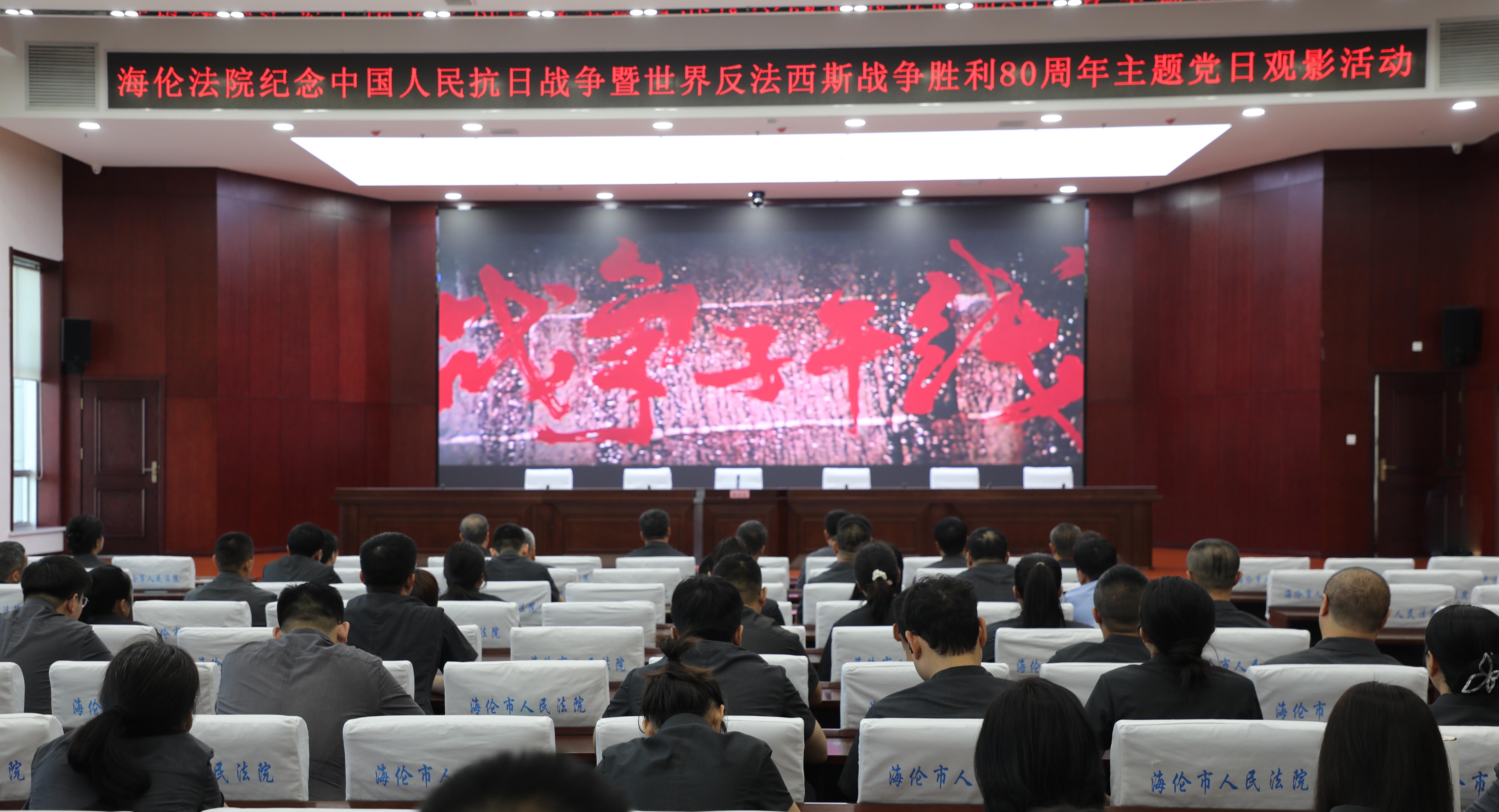 为纪念中国人民抗日战争暨世界反法西斯战争胜利80周年,传承红色基因,进一步激发全院干警的爱国热情和使命担当,8月26日,海伦法院开展“重温抗战史诗筑牢法治信仰”主题党日活动,组织干警集中观看影片《战争子午线》。活动由院党组成员、副院长陈志宏主持,院领导班子成员及全体干警参加活动。