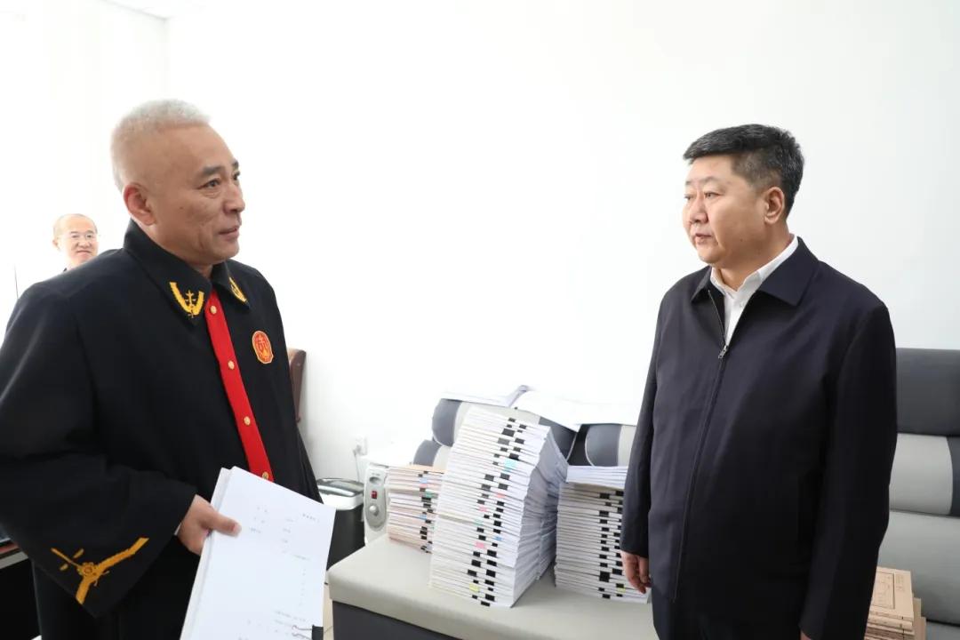 当日,海伦法院党组书记、院长王研亲自带领全体班子成员,深入各科室督导工作。每到一处,王研院长都与干警们进行亲切交谈。在交谈过程中,王研院长详细询问各部门工作开展情况,深入了解工作进程中的重点与难点;同时,对办公环境进行细致视察,关心干警们的工作条件。王研院长对干警们的辛勤付出和已取得的工作成果给予了充分肯定,让每一位干警都感受到了院领导的重视与关怀。