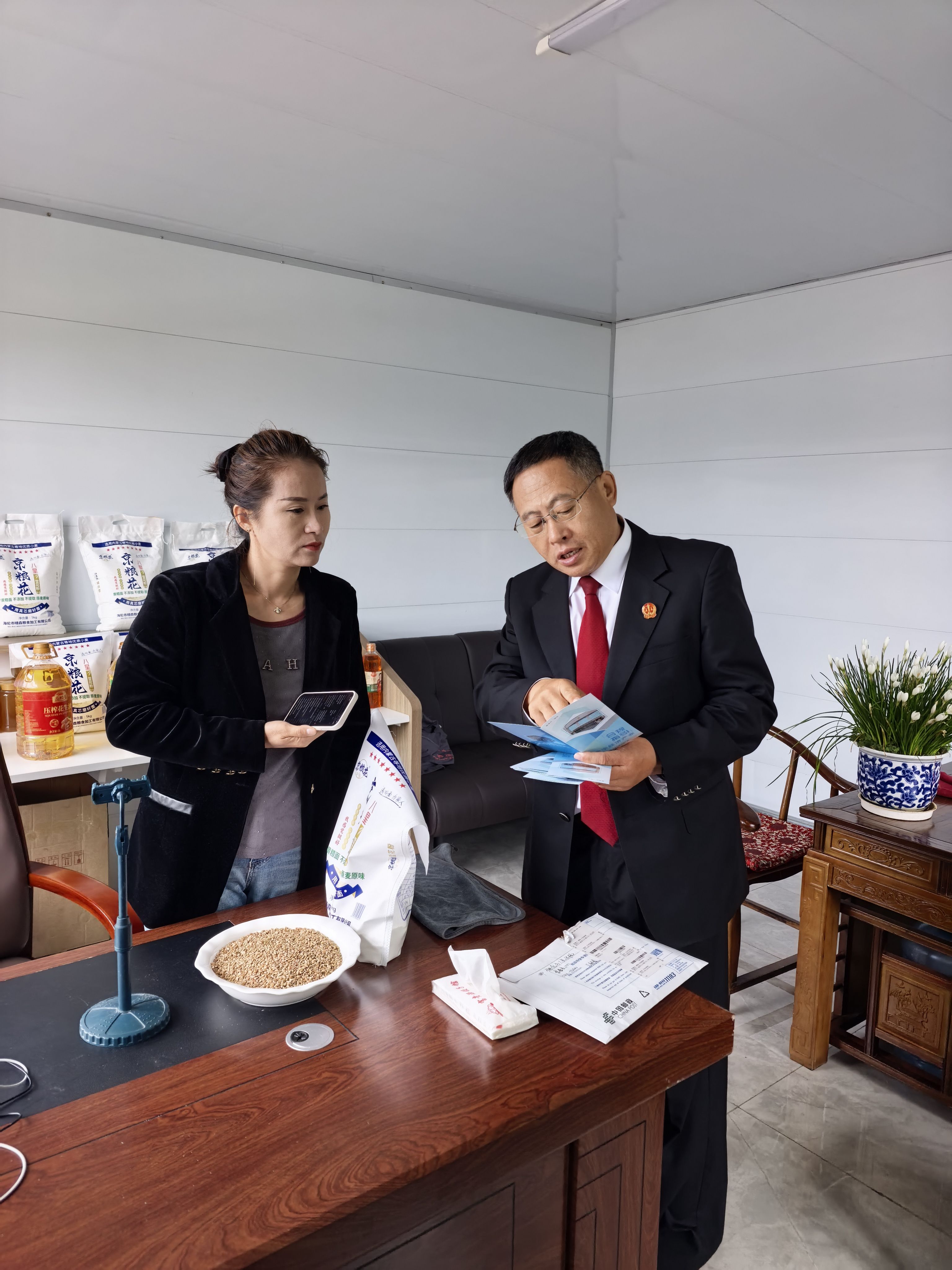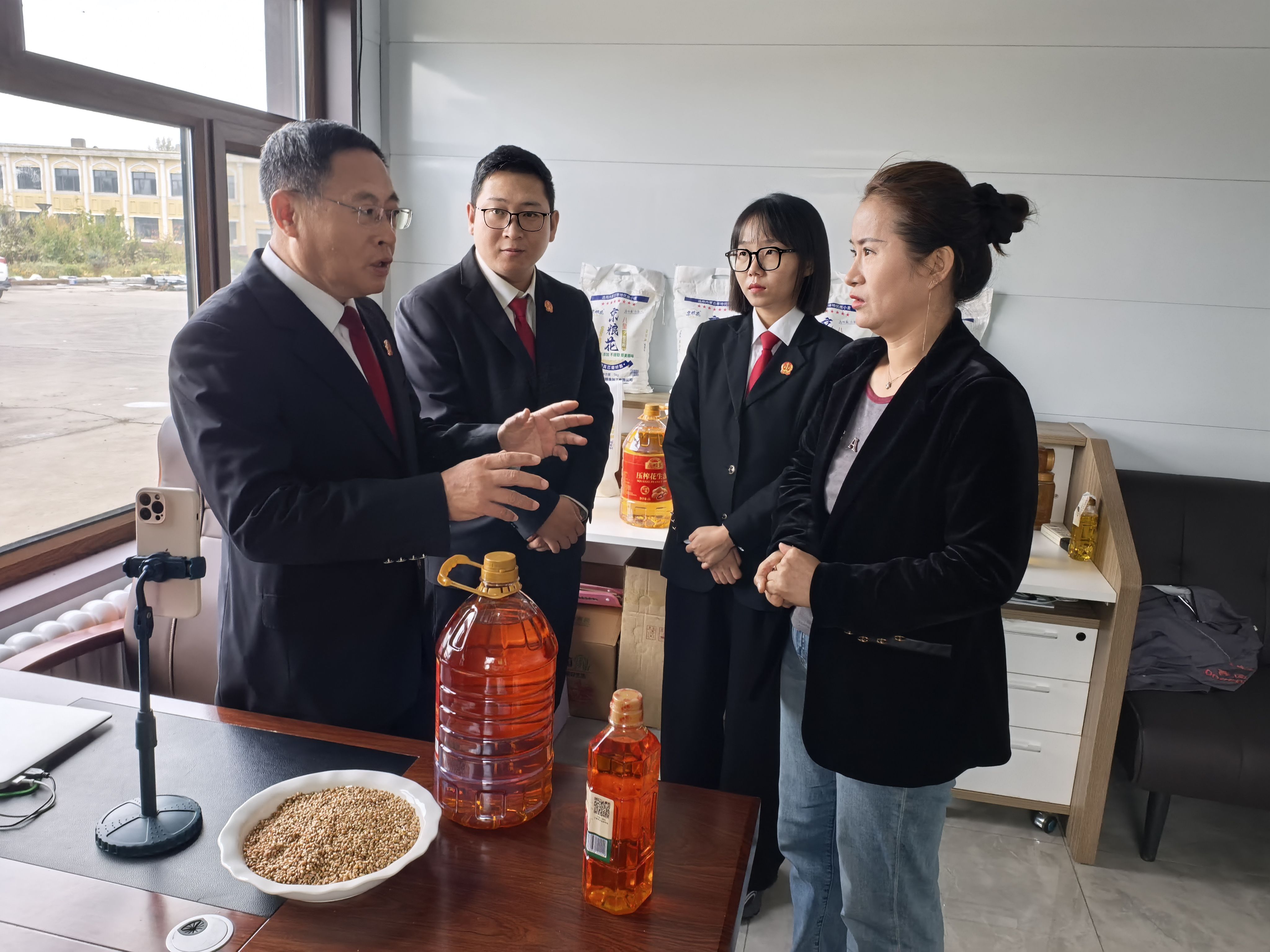 海伦市作为农业强县,近年来随着直播行业的兴起,销售农产品的直播间也逐步出现在人们的面前。为了更好的向直播电商创业者提供明确的法律风险预警和合规经营方向,海伦市人民法院民二庭法官走访了辖区内某公司,该公司利用电商平台销售大米、豆油、面粉、毛葱等农产品。《指引》针对直播电商、平台经济、数据应用等在经营中可能面临的法律问题,提供了清晰、实用的合规路径。《指引》中专门设有“知识产权保护合规”章节,明确要求经营者严格审核所售商品的知识产权权属,确保获得合法授权;不得销售侵犯他人著作权、商标权、专利权等知识产权的商品。通过向创业者宣传由绥化市中级人民法院发布的《绥化辖区数字经济产业合规指引》,有效预防和化解法律风险。