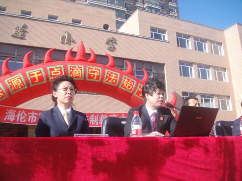 经过细致调查研究,发现在近阶段审理的刑事案件中,在校学生大欺小、抢钱、称霸的事时有发生。为使青少年从小养成遵纪守法的良好习惯,9月16日,海伦市人民法院少年庭的法官们来到海伦市实验小学,为该校1800余名学生及30余名老师上了一堂生动的法制课。受到了师生们的一致好评。