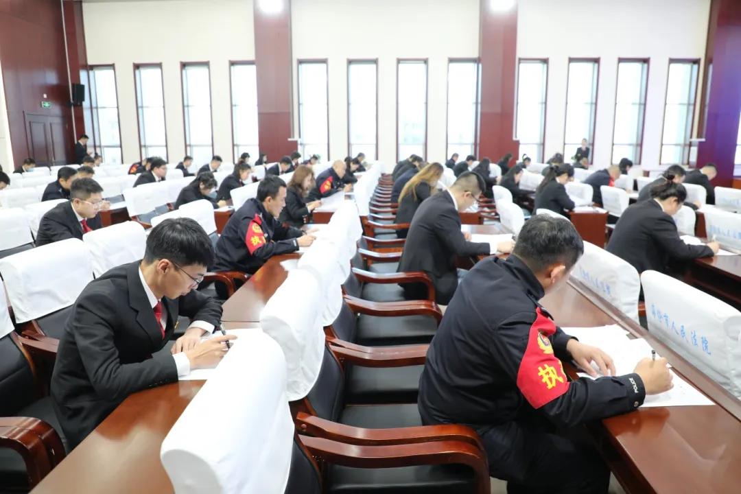 本次考核沿用笔试形式,考题紧扣法院当前工作实际,涵盖法律专业知识、党史知识、党纪知识、历史常识、时事政策、基本政治理论、保密知识以及法院现阶段重点工作等多个方面,考核工作严格按照既定程序严密组织实施。考核期间,考场秩序井然,全体参考干警态度严肃认真,全身心投入作答,整个考核流程规范有序、严谨细致。