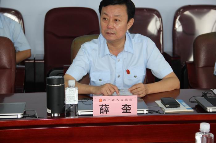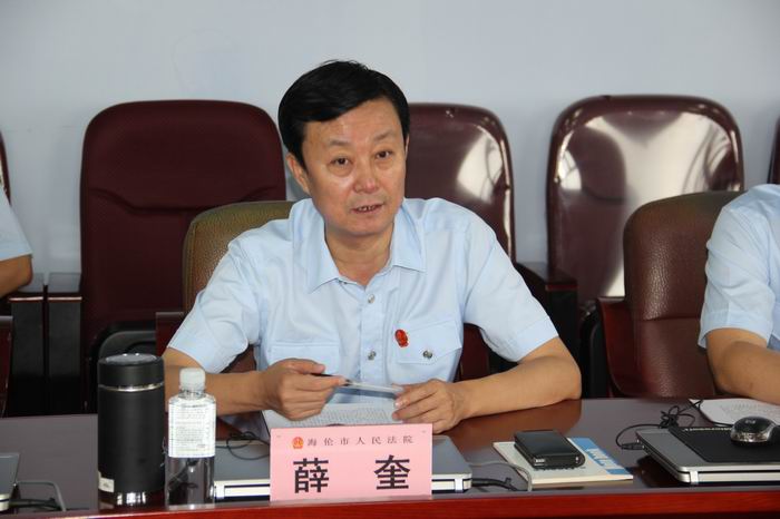 党组书记、院长薛奎代表海伦市法院对各位领导的莅临调研表示衷心地感谢。他表示,绥化市人大内司委在本次调研过程中提出的意见和建议将对海伦市法院司法规范化建设工作是一个巨大的推动,海伦市法院将以此为动力,不断改进审判工作,提高执法水平,为维护海伦市的和谐稳定,促进经济社会发展作出积极贡献。