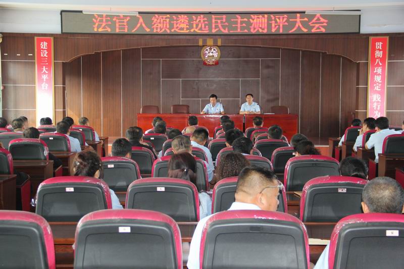 根据《黑龙江省高级人民法院关于在全省法院全面推进司法体制改革工作》的要求,9月6日上午,海伦市法院全体干警在六楼会议室召开法官入额遴选民主测评会,集中对申请入额法官的德、能、勤、绩、廉进行综合测评。会议由党组书记、院长薛奎主持,党组成员、政工科长李春生讲解划票要求。