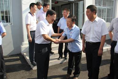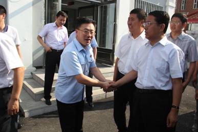 院长杜广伟与来院检查指导工作的绥化市委书记张晶川亲切握手