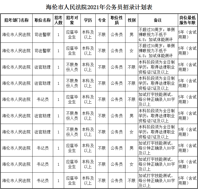 海伦法院招录公务员10名 期待你的加入