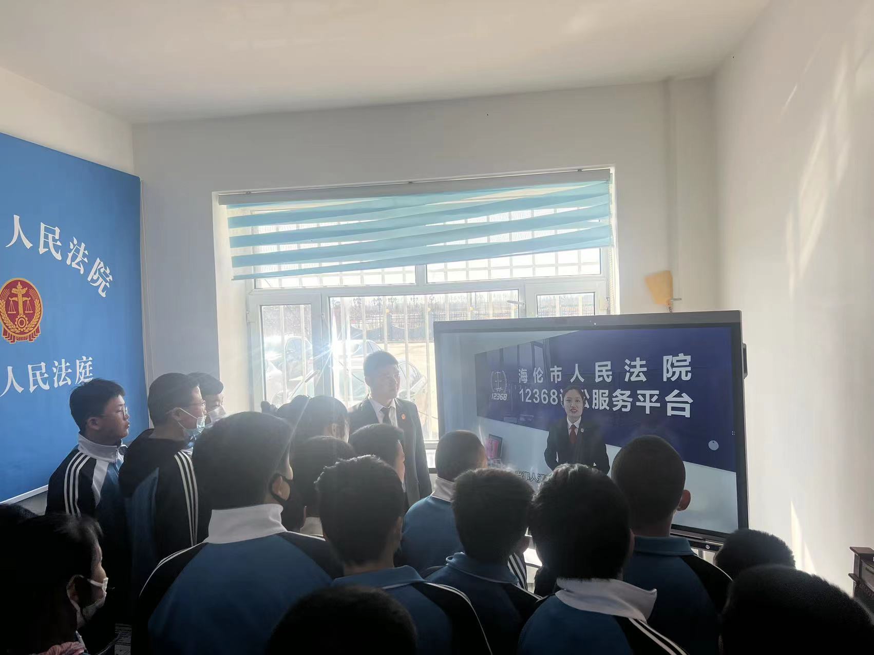 接下来,孟伟东带着大家观看了海伦市人民法院的宣传视频,在讲解员的解说下,同学们时不时的发出惊叹声,他们真切地感受到了法院的威严及法官职业尊荣感。